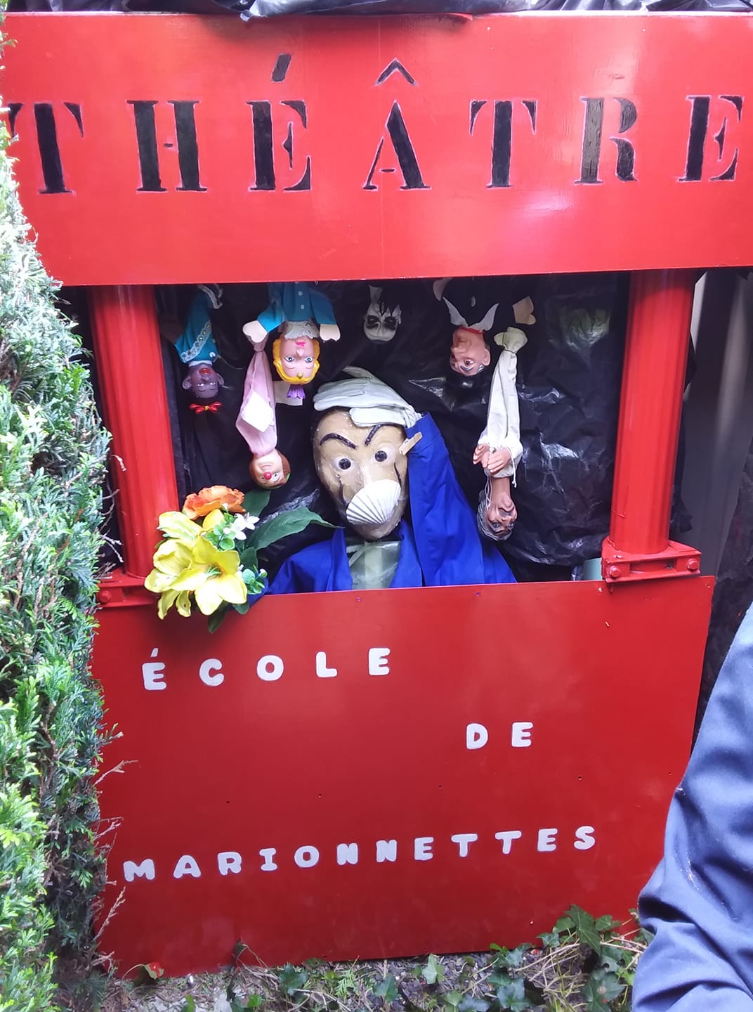 The marionette theatre, pictured above, can also be considered a scene. Presented as a THÉATRE,École de marionnettes (Theater, school for puppets) it is indeed all about a puppet show.